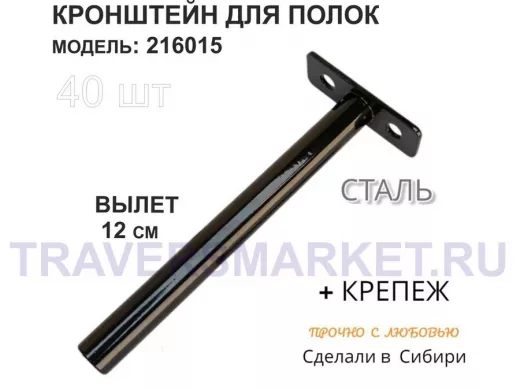 Кронштейн для скрытого крепления полок,12х120мм, черный, в наборе 40шт "SVORKAMAX-216015" без полки