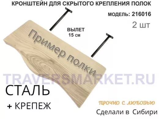 Кронштейн для скрытого крепления полок,12х150мм, черный, в наборе 2шт "SVORKAMAX-216016" без полки