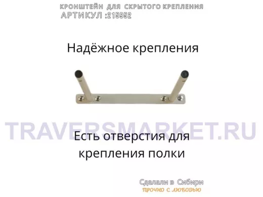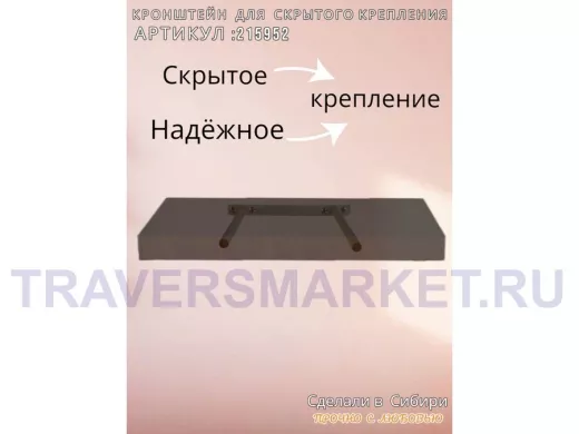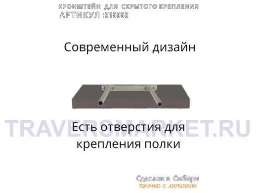 - Кронштейн предназначен для скрытого крепления полок, изготовленных из различных материалов: МДФ, ДСП, дерево, пластик.