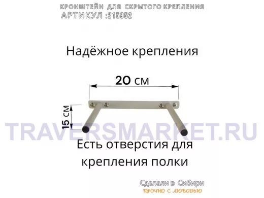 Кронштейн для скрытого крепления полок, 2х15см с отверстием, серый, в наборе 1шт "SVORKAMAX-215952"