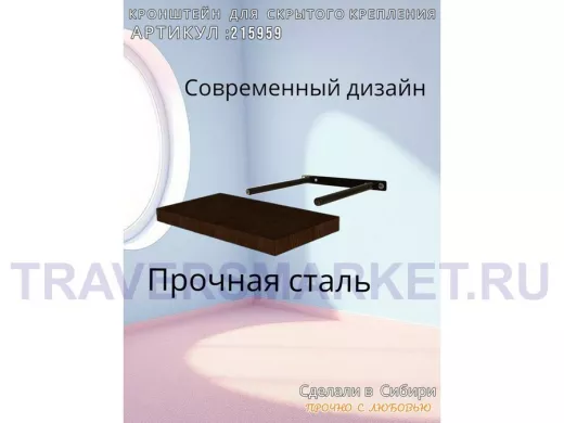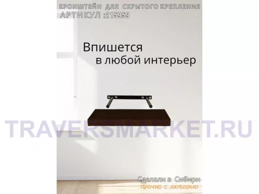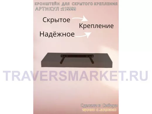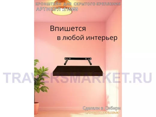 Кронштейн для скрытого крепления полок, 2х15см, черный, в наборе 1шт "SVORKAMAX-215959" ширина 20см
