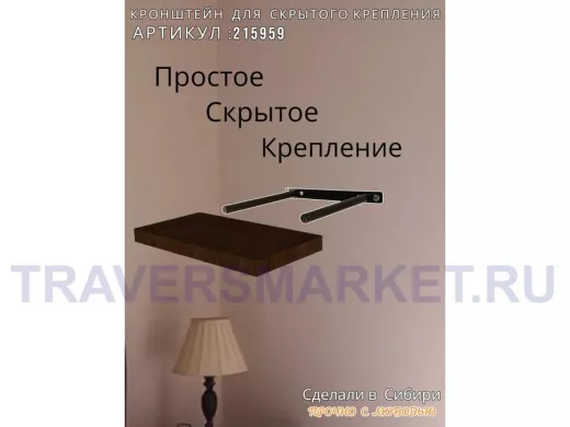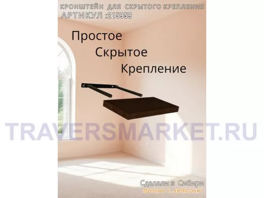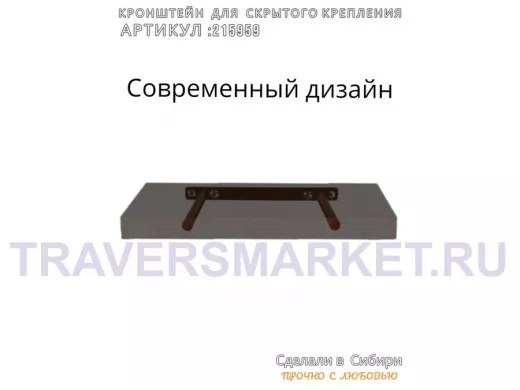 - Кронштейн предназначен для скрытого крепления полок, изготовленных из различных материалов: МДФ, ДСП, дерево, пластик.