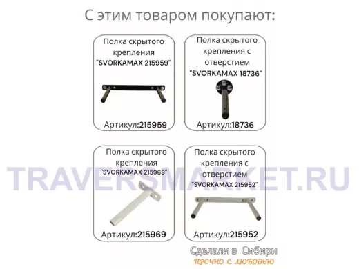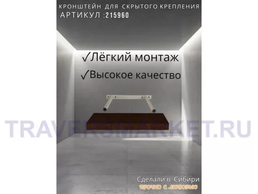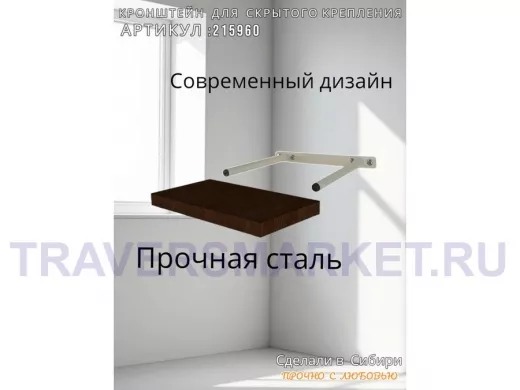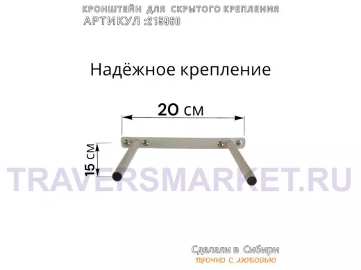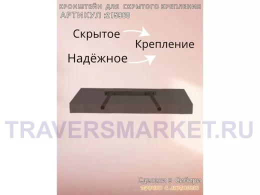 Заказать звонокКронштейн для скрытого крепления полок, 2х15см, серый, в наборе 1шт "SVORKAMAX-215960" ширина 20см