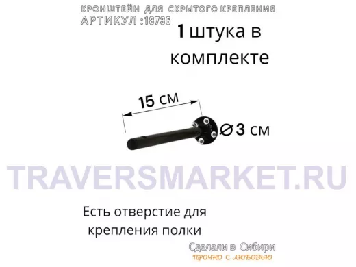 Кронштейн 1 шт для полок скрытого крепления, длина 150 мм с 5отверст. "SVORKAMAX-18736" 12мм, черный