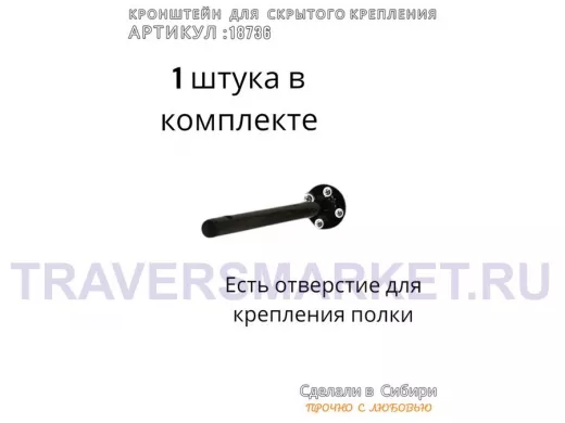 - Кронштейн предназначен для скрытого крепления полок, изготовленных из различных материалов: МДФ, ДСП, дерево, пластик.