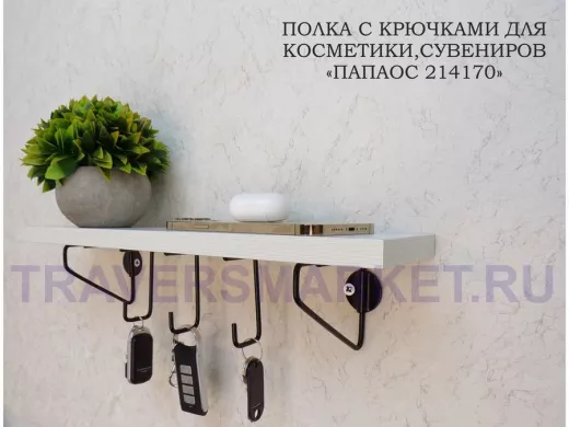 Заказать звонокКлючница, полка с крючками в прихожую 40х10 см, высота 9 см, черный "ПАПАОС 214170" сосна