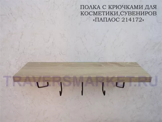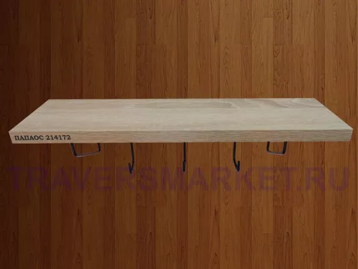 Ключница, полка с крючками в прихожую 40х10 см, высота 9 см, черный "ПАПАОС 214172" дуб сонома