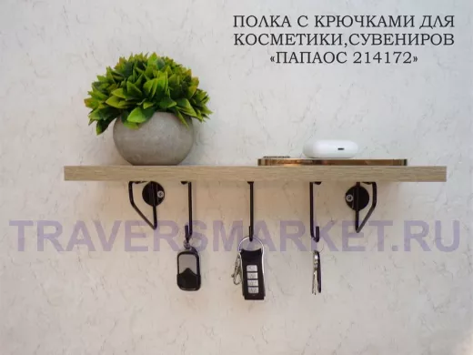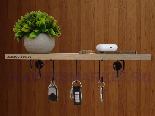 Заказать звонокКлючница, полка с крючками в прихожую 40х10 см, высота 9 см, черный "ПАПАОС 214172" дуб сонома