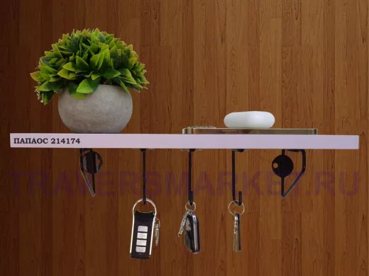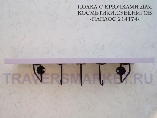 Ключница, полка с крючками в прихожую 40х10 см, высота 9 см, черный "ПАПАОС 214174" лаванда