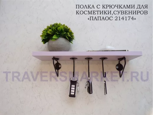 Заказать звонокКлючница, полка с крючками в прихожую 40х10 см, высота 9 см, черный "ПАПАОС 214174" лаванда