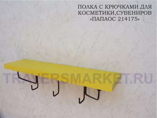 Ключница, полка с крючками в прихожую 40х10 см, высота 9 см, черный "ПАПАОС 214175" желтый