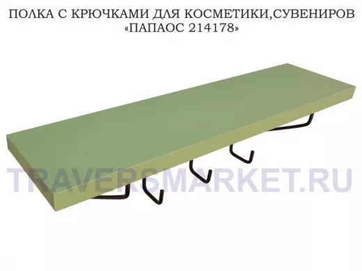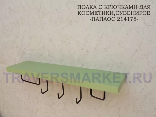 Ключница, полка с крючками в прихожую 40х10 см, высота 9 см, черный "ПАПАОС 214178" салатовый