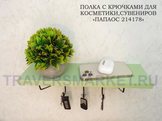 Заказать звонокКлючница, полка с крючками в прихожую 40х10 см, высота 9 см, черный "ПАПАОС 214178" салатовый