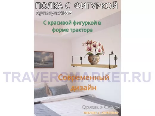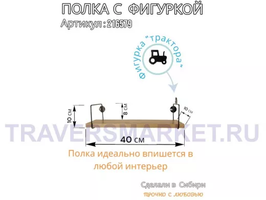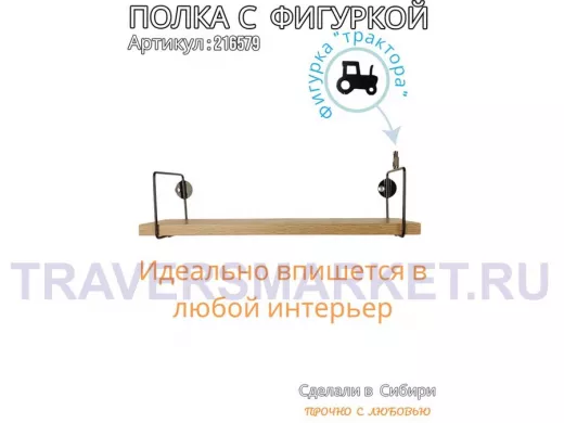 Заказать звонокПолка с фигуркой трактора "ABILOVE-216579" размер 10х40см ,черный ,дуб сонома