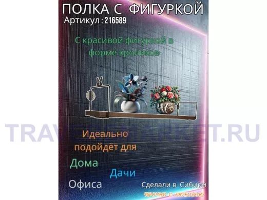Заказать звонокПолка с фигуркой кроликов "ABILOVE-216589" размер 10х60см ,черный ,венге