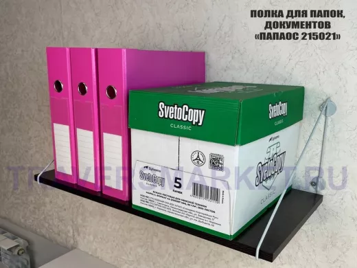 - Полка надежно крепится к стене при помощи анкеров или шурупов с дюбелями, на ней можно разместить папки, документы,бумагу и многое другое