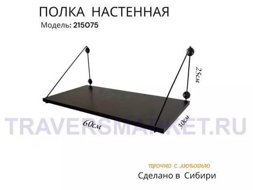Заказать звонокПолка для книг "КНИГОКРЕП 215075" высота 26 см размер 60х30 см черный и венге