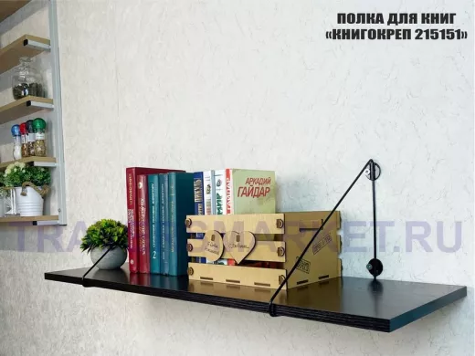 Заказать звонокПолка для книг "КНИГОКРЕП 215151" высота 26 см размер 90х30 см черный и венге