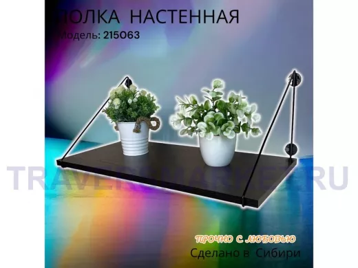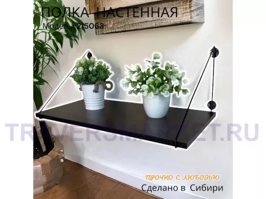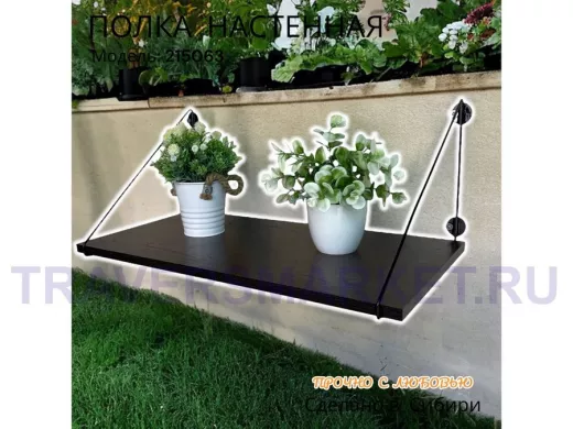 Полка выдержит тяжелые цветочные горшки с растениями, фоторамки, книги, сувениры и много другое.