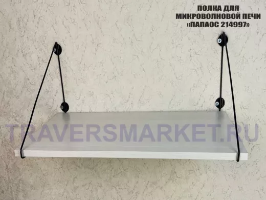 - Полка надежно крепится к стене при помощи анкеров или шурупов с дюбелями, на ней можно разместить микроволновую печь, кухонную технику, посуду, специи и многое другое