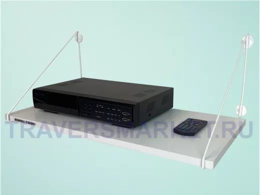 - Полка надежно крепится к стене при помощи анкеров или шурупов с дюбелями, на ней можно разместить видеорегистратор, монитор и многое другое