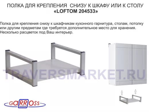 Заказать звонокПолка под шкаф, 15см, серая "LOFTOM 204533" крепление под стол, размер полки 30х40см, сосна