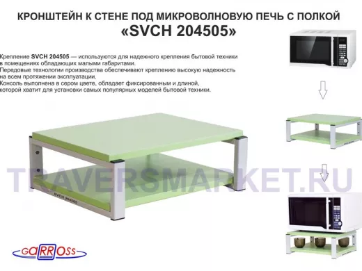 Заказать звонокКронштейн для микроволновки, 17см серый "SVCH 204505" под микроволновую печь, полка 30х40, салатовый