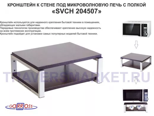 Заказать звонокКронштейн для микроволновки, 17см серый "SVCH 204507" под микроволновую печь, полка 30х40см, венге