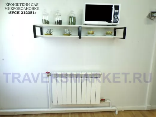 Заказать звонокКронштейн для микроволновки, 17см черный, 2 полки 30х120см "SVCH 212351" под микроволновую, сосна