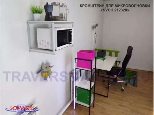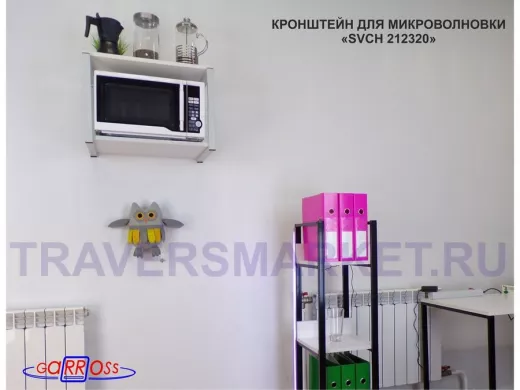 Кронштейн для микроволновки, 38см серый "SVCH 212320" две полки 35х54см, сосна выбеленная