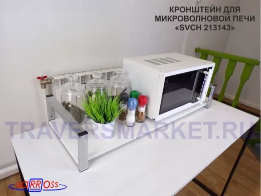 Кронштейн для микроволновой печи, 15см серебристый "SVCH 213143" полка 90х30, сосна выбеленная