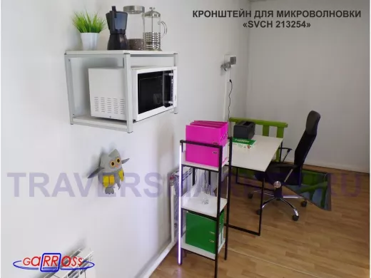 Кронштейн для микроволновки, 38см серый "SVCH 213254" две полки 35х60см, сосна выбеленная