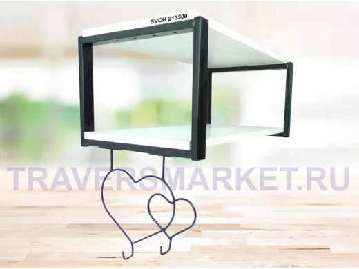 Кронштейн для микроволновки, 27см черный "SVCH 213500" полка 60х30 см, сосна, с двумя сердцами