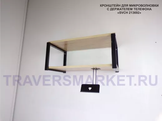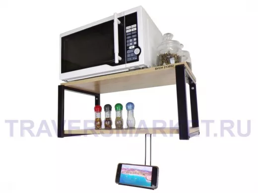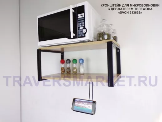 Полка для микроволновой печи с держателем телефона, 27см черный "SVCH 213692", 60х30, дуб сонома