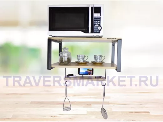 Полка для микроволновой печи с держателем телефона, 27см черный "SVCH 213710", 60х30, дуб сонома