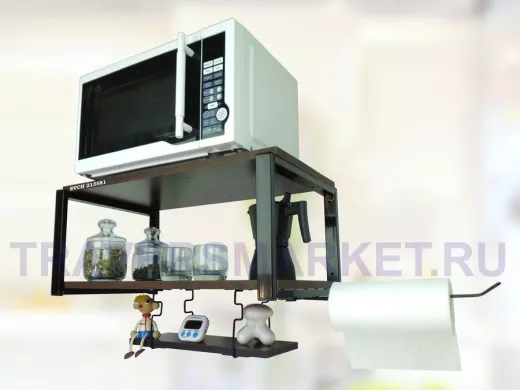 Заказать звонокПолка для микроволновки 60x30см с подвеской 40x15см, 27см, черный "SVCH 213581" ,венге, с держателем