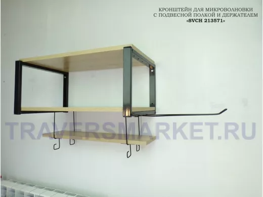 Заказать звонокПолка для микроволновки с подвесной полкой и держателем полотенец,черная "SVCH 213571" 60х30см, дуб