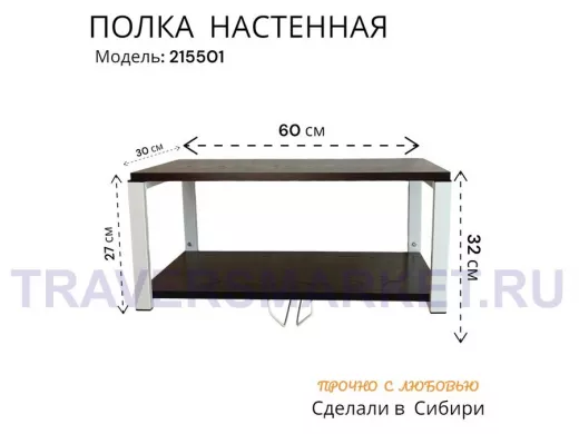 - Размер поверхности полки 30 х 60 см