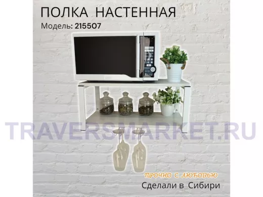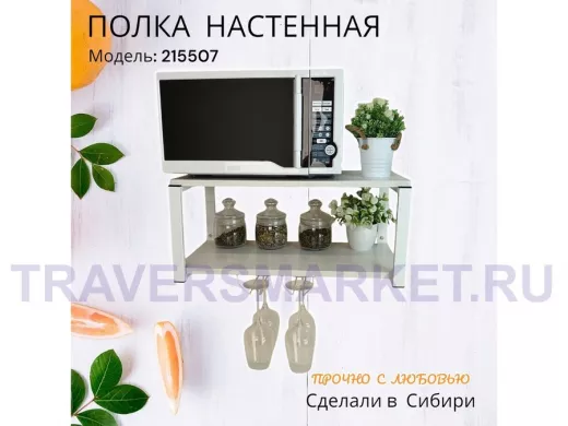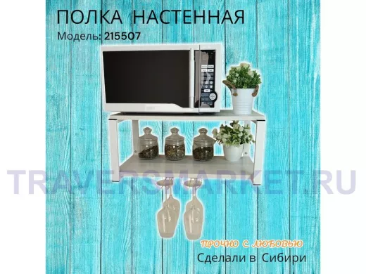 Заказать звонокПолка c двумя бокалодержателем для микроволновки "SVCH 215507" 60х30см, белая, сосна выбеленная