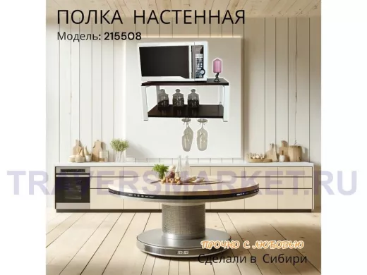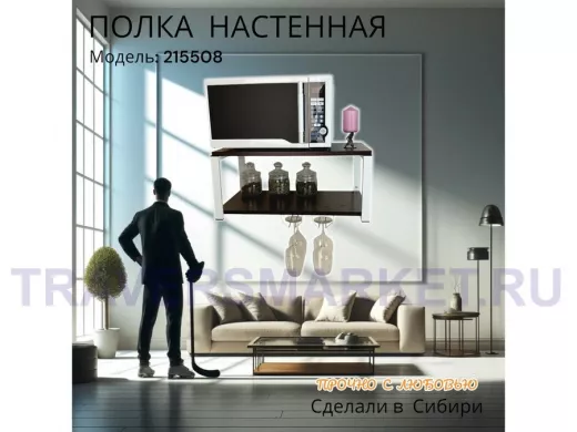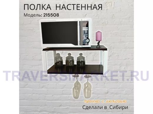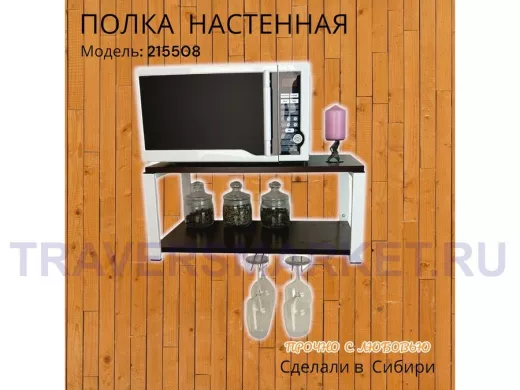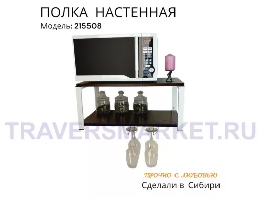 Заказать звонокПолка c двумя бокалодержателем для микроволновки "SVCH 215508" 60х30см, белая, венге
