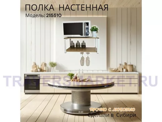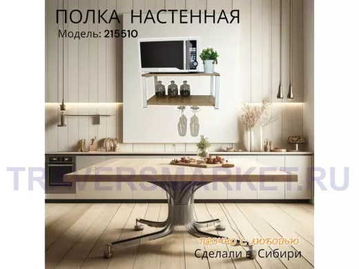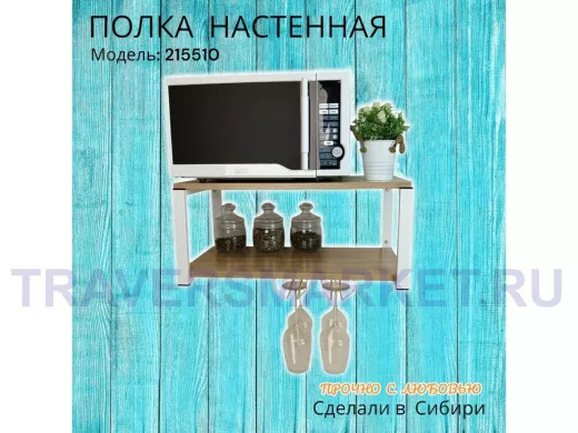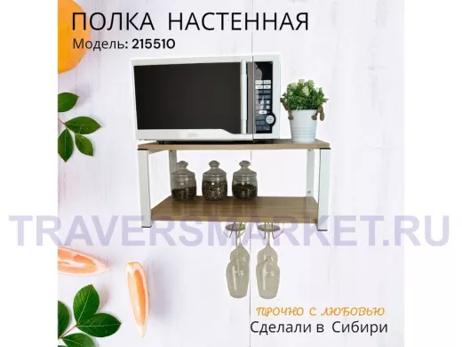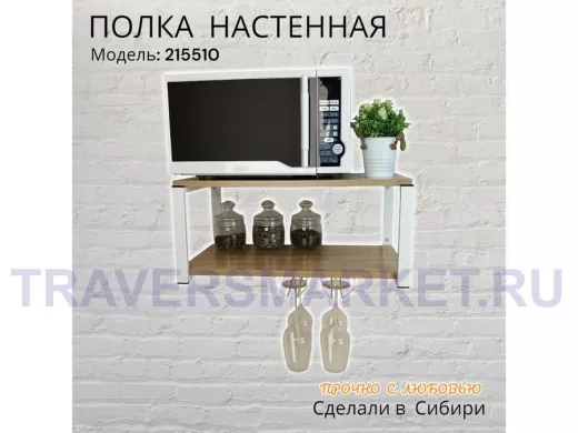 Заказать звонокПолка c двумя бокалодержателем для микроволновки "SVCH 215510" 60х30см, белая, дуб сонома