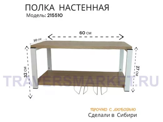 - Размер поверхности полки 30 х 60 см