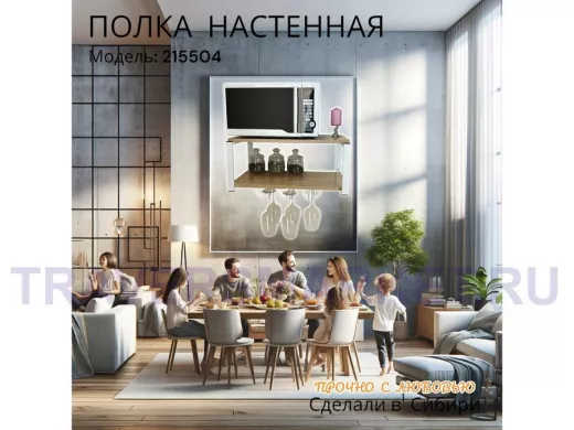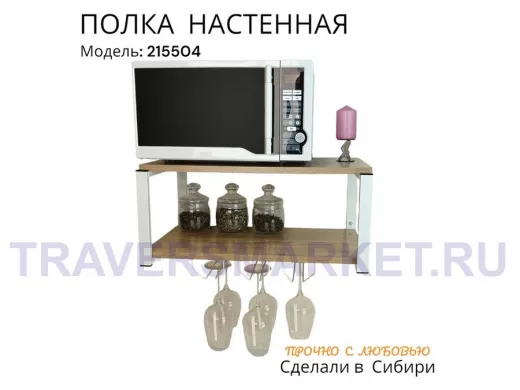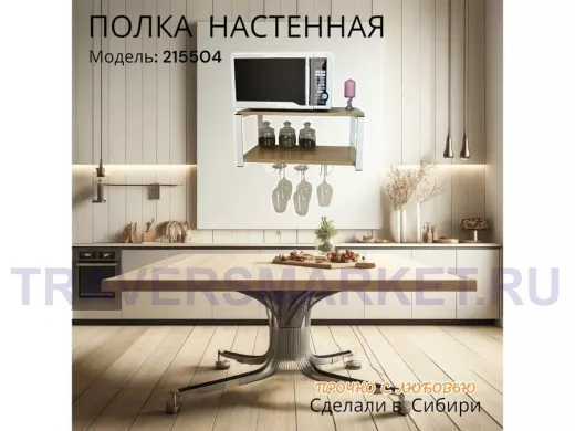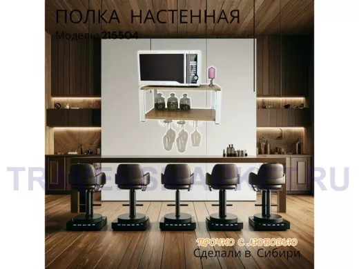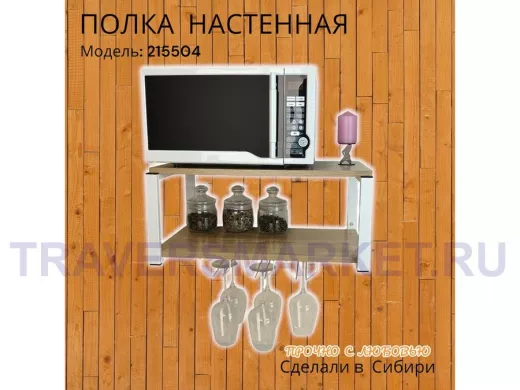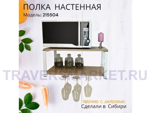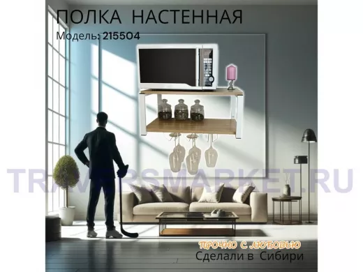 Заказать звонокПолка c тремя бокалодержателями для микроволновки "SVCH 215504" 60х30см, белая, дуб сонома