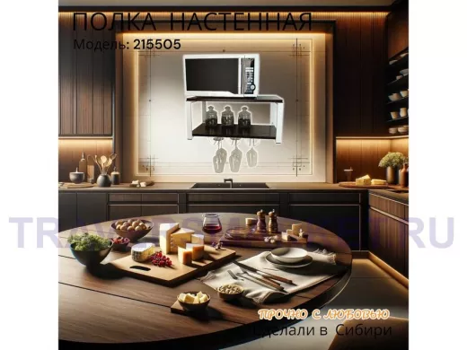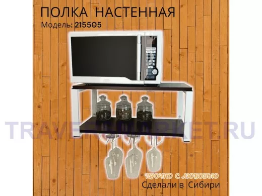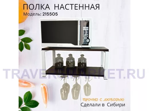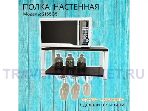Заказать звонокПолка c тремя бокалодержателями для микроволновки "SVCH 215505" 60х30см, белая, венге