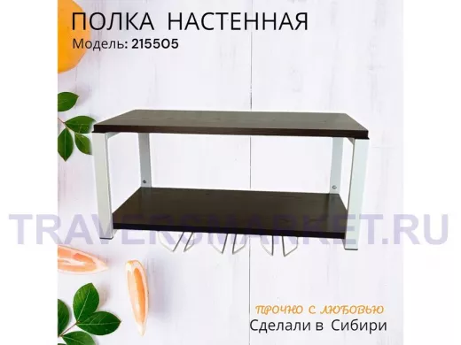 Полка c тремя бокалодержателями для микроволновки "SVCH 215505" 60х30см, белая, венге