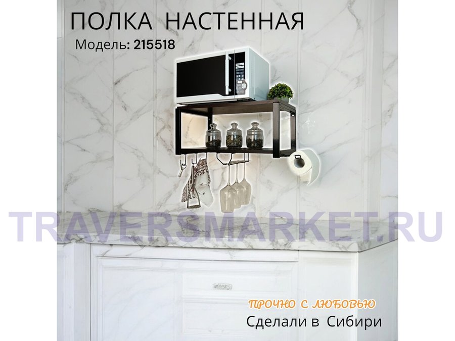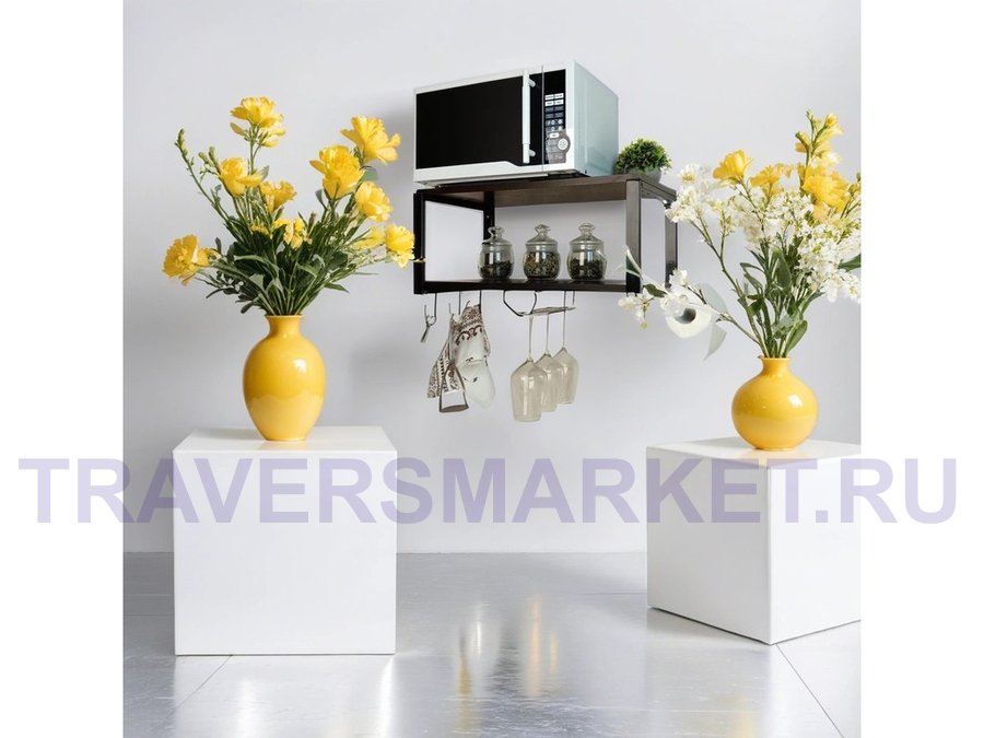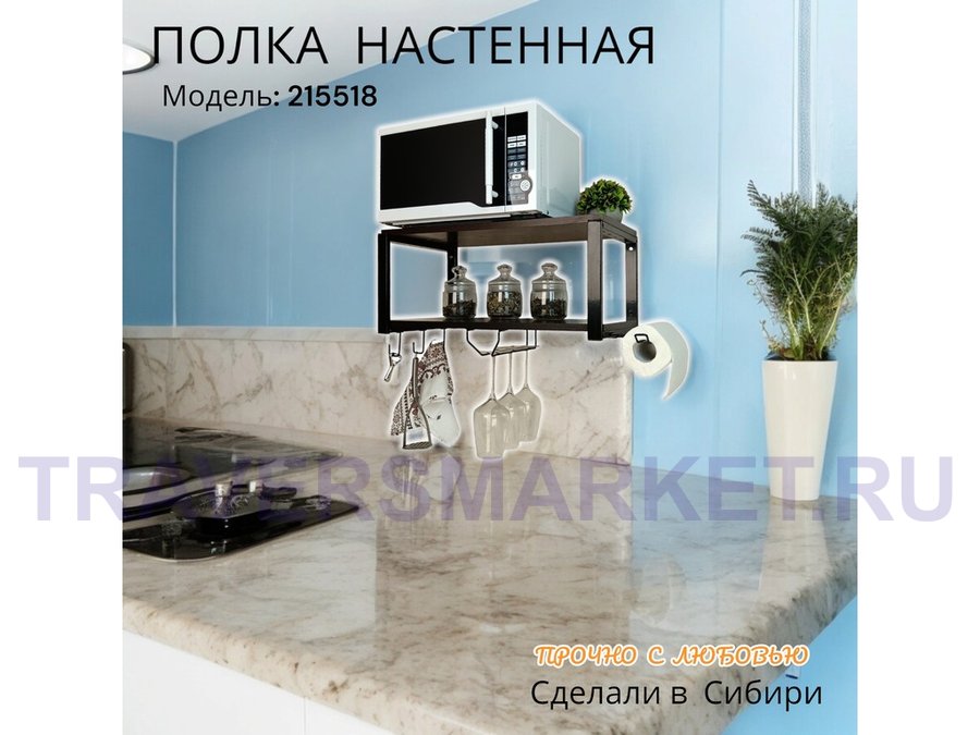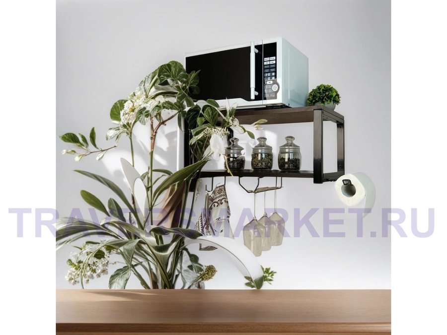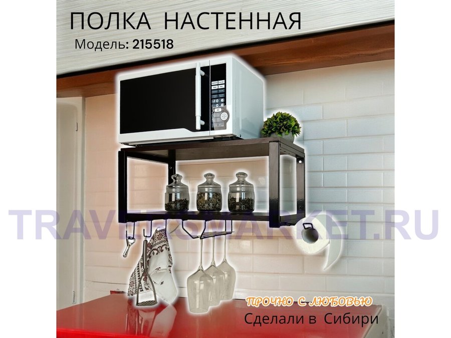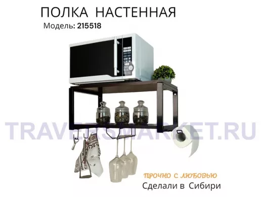Заказать звонокПолка для микроволновки c бокало и полотенцедержат, крючками"ПолкаКрепка-215518"60х30см,черная,венге