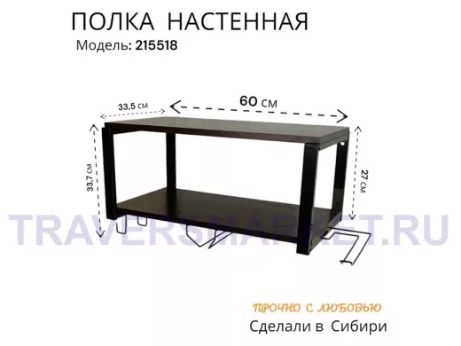 - Каркас изделия выполнен из высокопрочного металлического профиля. Полка изготовлена из ЛДСП