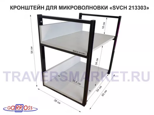 Кронштейн для микроволновки, высота, 54см черный "SVCH 213303" две полки 35х60см со стенками, сосна