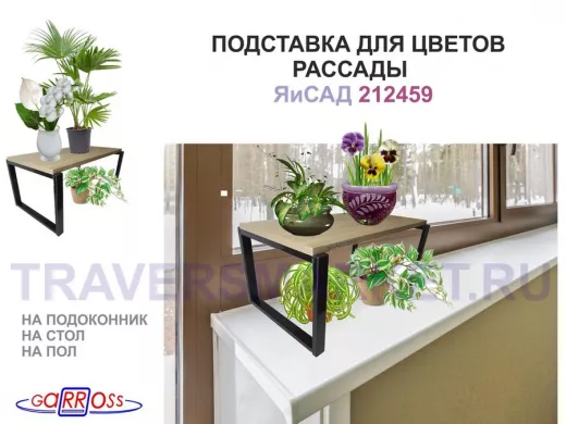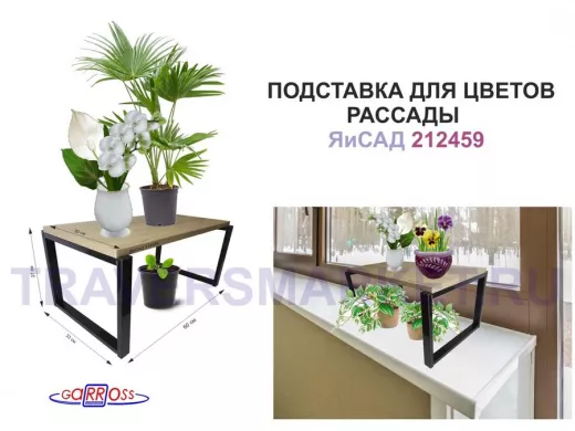 Заказать звонокПодставка для цветов на подоконник или пол, высота 27см, черный "ЯиСАД 212459" полка 60х30см, дуб