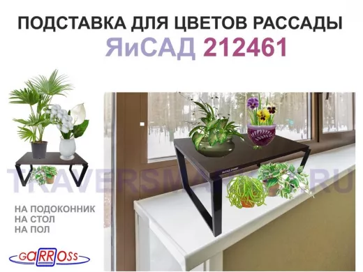 Подставка для цветов на подоконник или пол, высота 27см, черный "ЯиСАД 212461" полка 60х30см, венге